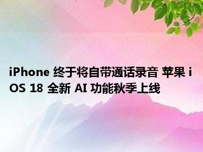 iPhone 终于将自带通话录音 苹果 iOS 18 全新 AI 功能秋季上线