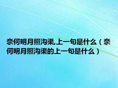 奈何明月照沟渠,上一句是什么(奈何明月照沟渠的上一句是什么)