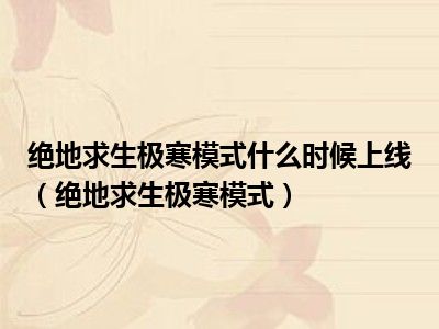 绝地求生极寒模式什么时候上线(绝地求生极寒模式)