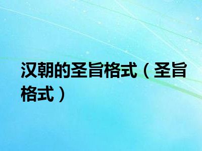 汉朝的圣旨格式(圣旨格式)