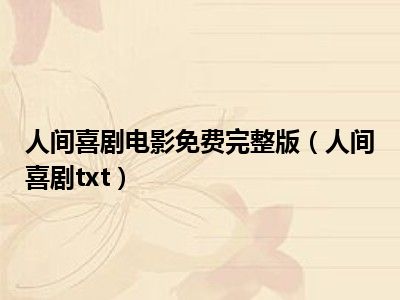 大家好,小必来为大家解答以上的问题。人间喜剧电影免费完整版,人间喜剧txt这个很多人还不知道,现在让我们一起来看看吧!