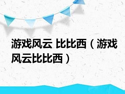 大家好,小必来为大家解答以上的问题。游戏风云 比比西,游戏风云比比西这个很多人还不知道,现在让我们一起来看看吧!