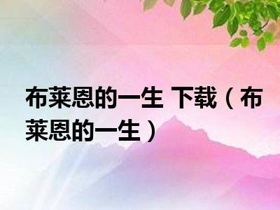 大家好,小必来为大家解答以上的问题。布莱恩的一生 下载,布莱恩的一生这个很多人还不知道,现在让我们一起来看看吧!