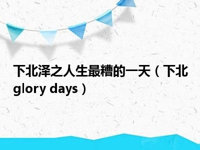 大家好,小必来为大家解答以上的问题。下北泽之人生最糟的一天,下北glory days这个很多人还不知道,现在让我们一起来看看吧!