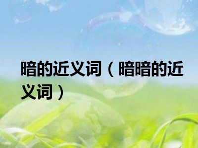 大家好,小必来为大家解答以上的问题。暗的近义词,暗暗的近义词这个很多人还不知道,现在让我们一起来看看吧!