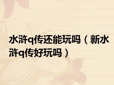 水浒q传还能玩吗(新水浒q传好玩吗)