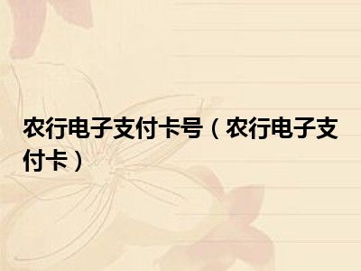 大家好,小必来为大家解答以上的问题。农行电子支付卡号,农行电子支付卡这个很多人还不知道,现在让我们一起来看看吧!