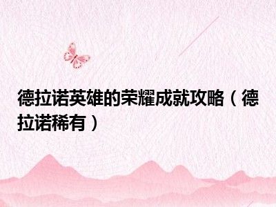 大家好,小必来为大家解答以上的问题。德拉诺英雄的荣耀成就攻略,德拉诺稀有这个很多人还不知道,现在让我们一起来看看吧!