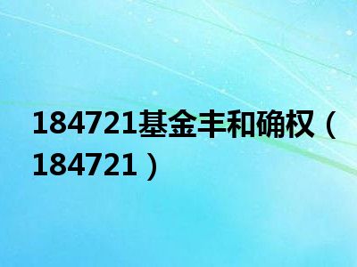 大家好,小必来为大家解答以上的问题。184721基金丰和确权,184721这个很多人还不知道,现在让我们一起来看看吧!