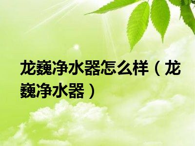 大家好,小必来为大家解答以上的问题。龙巍净水器怎么样,龙巍净水器这个很多人还不知道,现在让我们一起来看看吧!