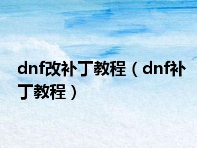 dnf改补丁教程(dnf补丁教程)