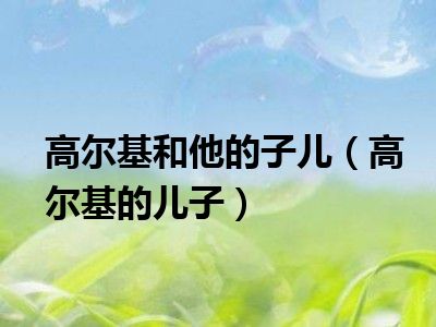大家好,小必来为大家解答以上的问题。高尔基和他的子儿,高尔基的儿子这个很多人还不知道,现在让我们一起来看看吧!