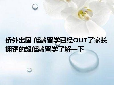 侨外出国 低龄留学已经OUT了家长拥趸的超低龄留学了解一下